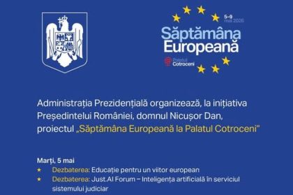Administrația Prezidențială a anunțat organizarea unui eveniment de anvergură, intitulat „Săptămâna Europeană la Palatul Cotroceni”, care se va desfășura în…