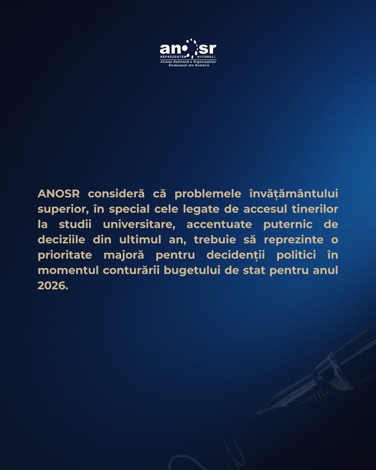 Potrivit ANOSR, costul minim lunar al unui student depășește 2.000 de lei, în timp ce cuantumul bursei sociale este de 925 de lei, iar aproximativ 44.000 de studenți au rămas fără sprijin financiar. În acest context, organizația consideră că accesul tinerilor la învățământul superior este grav afectat și trebuie să devină o prioritate majoră în procesul de elaborare a bugetului de stat pentru anul 2026.