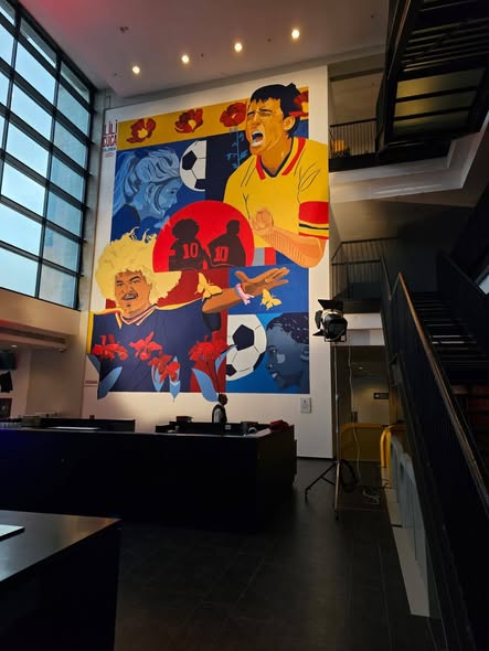 Arena Națională din București a fost astăzi gazda unui eveniment special: inaugurarea unui mural impresionant dedicat lui Gheorghe Hagi, simbol al fotbalului românesc, și lui Carlos Valderrama, liderul echipei Columbiei la Cupa Mondială din 1994