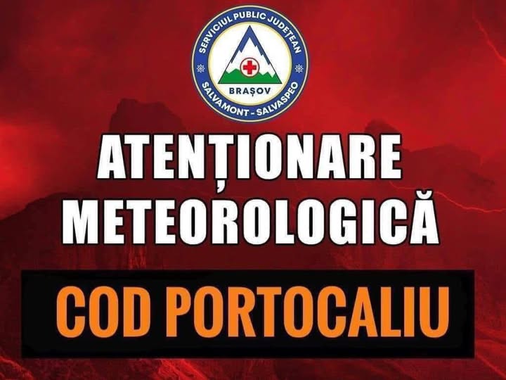 Salvamont Brașov anunță că Administrația Națională de Meteorologie a emis o avertizare COD PORTOCALIU pentru zona montană a județului Brașov situată la peste 1800 de metri altitudine