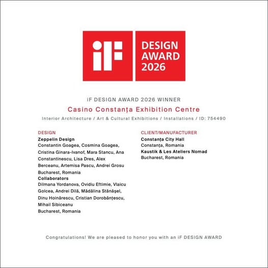 Primăria Municipiului Constanța a anunțat cu mândrie că proiectul de amenajare a Centrului Expozițional din interiorul monumentului istoric a fost distins cu celebrul premiu iF Design Award 2026