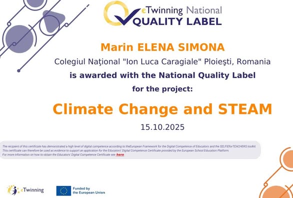Colegiul Național „Ion Luca Caragiale” anunță cu mândrie că a obținut două Certificate Naționale de Calitate eTwinning, recunoscute pentru excelență în implementarea proiectelor europene