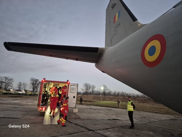 Forțele Aeriene Române desfășoară sâmbătă, 27 decembrie, o misiune vitală de transport medical internațional. O aeronavă C-27J Spartan, special configurată pentru intervenții de tip evacuare medicală, a decolat de la Baza 90 Transport Aerian din Otopeni pentru a transporta doi pacienți cu arsuri grave către un centru de specialitate din Bruxelles, Belgia