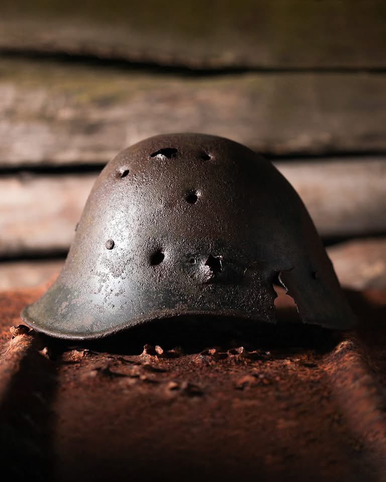 Printre piesele prezentate se numără o cască de model olandez folosită de Armata Română, recuperată din zona Stalingrad – Cotul Donului, care păstrează urme de gloanțe, precum și ediții ale publicației militare „Sentinela” din 1942.