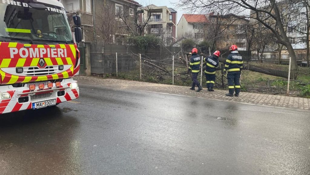 Forțele de intervenție au acționat pentru degajarea elementelor de construcție căzute de la 30 de imobile, precum și a 72 de copaci și 7 stâlpi prăbușiți, iar în evenimentele produse au fost avariate 9 autoturisme.