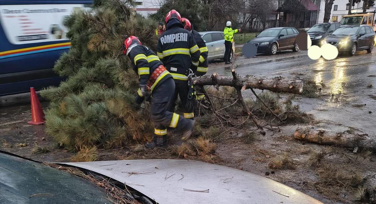 Forțele de intervenție au acționat pentru degajarea elementelor de construcție căzute de la 30 de imobile, precum și a 72 de copaci și 7 stâlpi prăbușiți, iar în evenimentele produse au fost avariate 9 autoturisme.