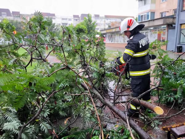 • În București, un copac s-a prăbușit peste un autoturism în mers, fără victime.