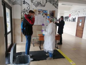 Tot la intarea în școli, elevilor li se măsoară temperatura de către un cadru medical.