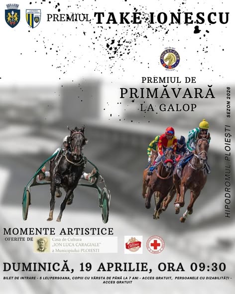 Duminică, 19 aprilie 2026, Hipodromul Ploiești a fost scena unui eveniment sportiv dedicat curselor de cai, respectiv Premiul „Take Ionescu” și Premiul de Primăvară la Galop, organizate de Clubul Sportiv Ploiești, care au atras un public numeros și au creat o atmosferă animată