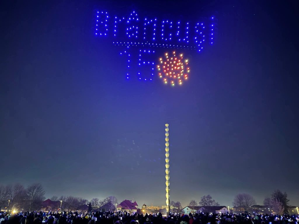 Momentul final al serii s-a desfășurat în apropierea monumentului-simbol al orașului, Coloana fără Sfârșit. Sub cerul înstelat, câteva sute de drone au conturat în lumină silueta Coloanei, fragmente din operele lui Brâncuși și portretul artistului, într-un spectacol care a adus comunitatea mai aproape, prin muzică și lumină.