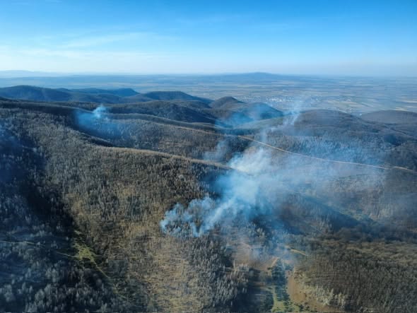 O situație și mai critică se înregistrează în localitatea Nănești, județul Maramureș. Flăcările au mistuit deja aproximativ 20 de hectare de vegetație uscată și s-au extins la litiera unei păduri de foioase, existând un risc real de propagare rapidă la coronamentul arborilor.
