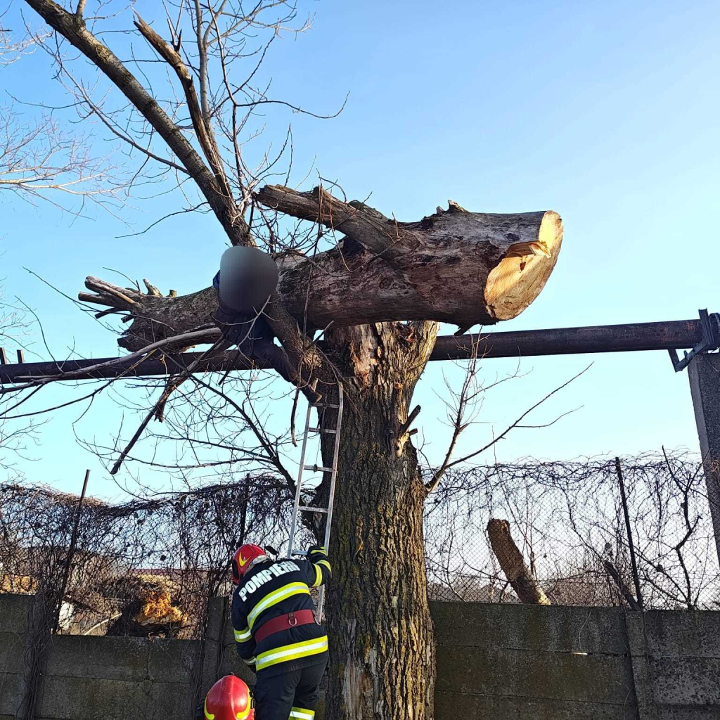Dramă la înălțime în Roman! Operațiune contracronometru pentru salvarea unui tânăr strivit de un arbore