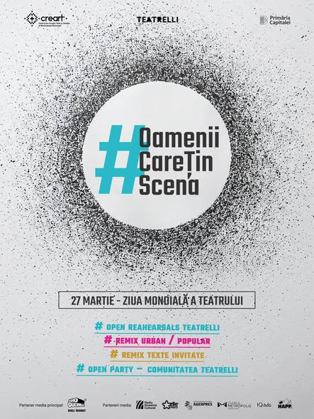 În paralel, centrul Creart propune o abordare neconvențională prin proiectul Teatrelli. Sub umbrela campaniei #OameniiCareTinScena, bucureștenii sunt invitați vineri la un adevărat maraton, începând cu ora 11:00. Publicul va avea ocazia rară de a asista la repetiții și de a asculta actorii interpretând texte chiar în fața clădirii, ziua culminând la ora 20:00 cu o petrecere organizată la Grădina cu Filme.