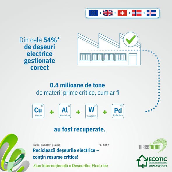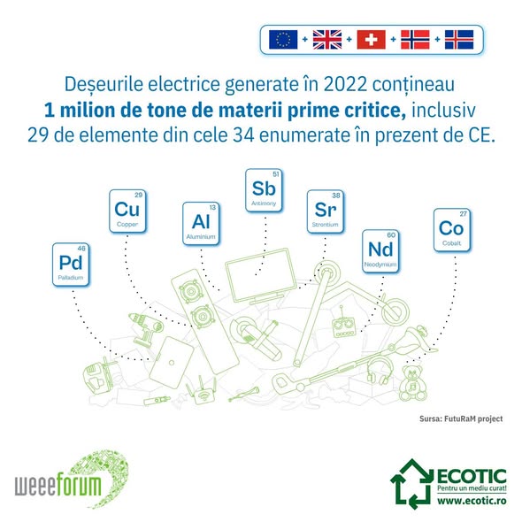 Potrivit ONU, până în 2030, deșeurile electronice ar putea deveni una dintre cele mai valoroase surse de materii prime, dacă sunt reciclate corect. Raportul european FutuRaM, finanțat de Uniunea Europeană, subliniază rolul esențial al echipamentelor electrice și electronice în economia Europei. Prin colectare și reciclare, protejăm resursele, reducem dependența de importuri și sprijinim economia circulară. Totuși, 74% dintre europeni păstrează electronice nefolosite acasă.