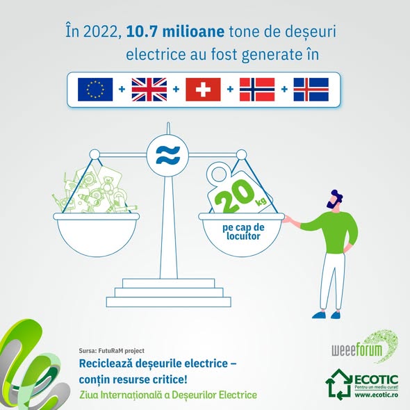Ministerul Mediului, împreună cu Organizația ECOTIC, atrage atenția asupra importanței colectării și reciclării deșeurilor electrice și electronice (#EEE)