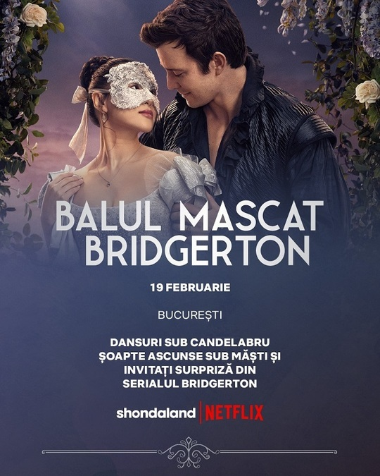 Netflix îi invită pe fani la „Balul Mascat Bridgerton”, un eveniment special care va avea loc pe 19 februarie și care celebrează, într-o singură seară, universul „Bridgerton” și lansarea celui de-al patrulea sezon al serialului-fenomen!