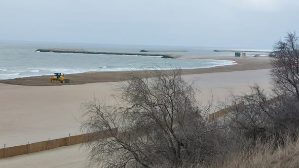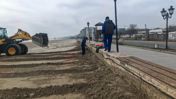 Zeci de utilaje grele și muncitori mobilizați pentru ecologizarea nisipului