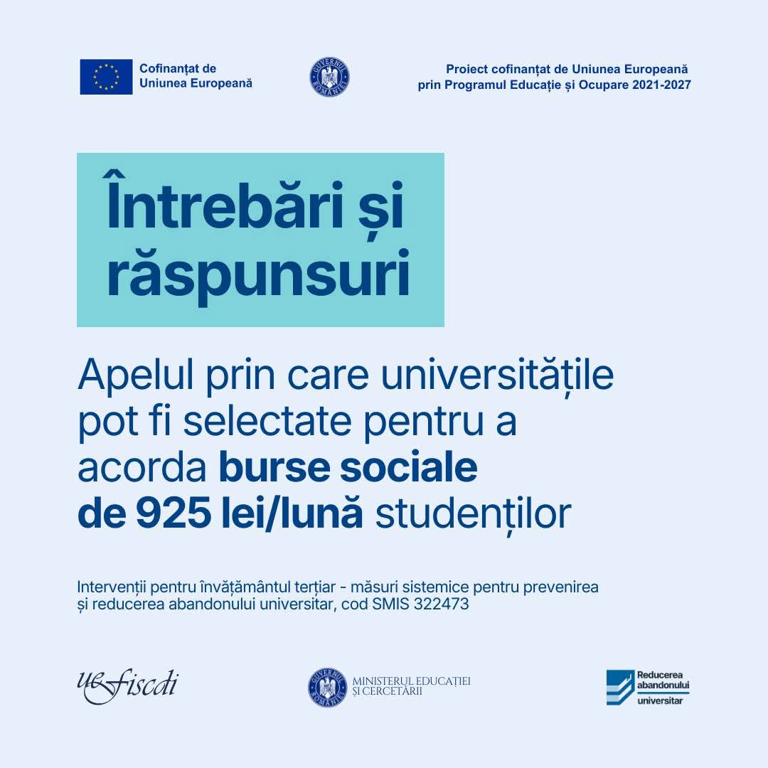 Ministerul Educației și Cercetării, în parteneriat cu Unitatea Executivă pentru Finanțarea Învățământului Superior, a Cercetării, Dezvoltării și Inovării (UEFISCDI), a lansat un set oficial de clarificări referitoare la programul de burse destinat mediului universitar
