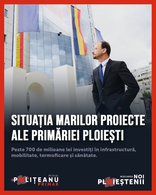 Primăria Ploiești a anunțat situația celor mai importante proiecte de investiții planificate pentru anul 2026, cu o valoare cumulată de 702.557.351 lei fără TVA, reprezentând cele mai mari investiții simultane realizate vreodată în oraș