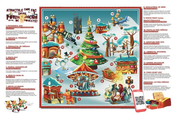 Târgul oferă o gamă variată de experiențe pentru întreaga familie: patinoar, carusel, ateliere creative, proiecții de filme, spectacole tematice, acțiuni caritabile și, desigur, întâlniri cu Moș Crăciun. Întreaga zonă prinde viață cu decoruri spectaculoase, potrivite pentru fiecare etapă a aventurii de iarnă.