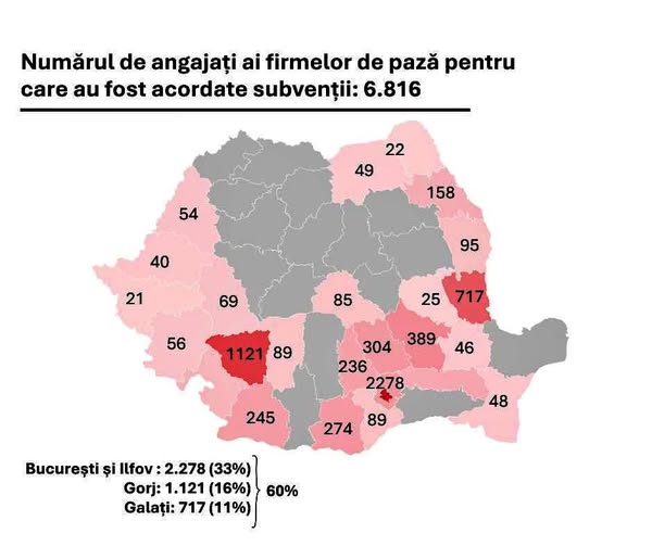 Totuși, analiza datelor din anul 2025 a scos la iveală nereguli majore. Conform prim-ministrului, din totalul de peste 13.200 de persoane angajate prin această schemă, locurile de muncă nu au fost create în sectoare productive, precum industria sau construcțiile. Peste jumătate dintre aceste contracte subvenționate, mai exact 6.816, au fost înregistrate la firme de pază și protecție. Mai mult, aceste companii sunt concentrate suspect în doar câteva zone ale țării: București și zona limitrofă, județul Gorj și județul Galați.