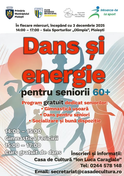 Casa de Cultură „Ion Luca Caragiale” a Municipiului Ploiești, în parteneriat cu Primăria Ploiești, Clubul Sportiv Municipal și Asociația „Întoarce-te la Sport”, lansează un program gratuit și permanent dedicat persoanelor de peste 60 de ani