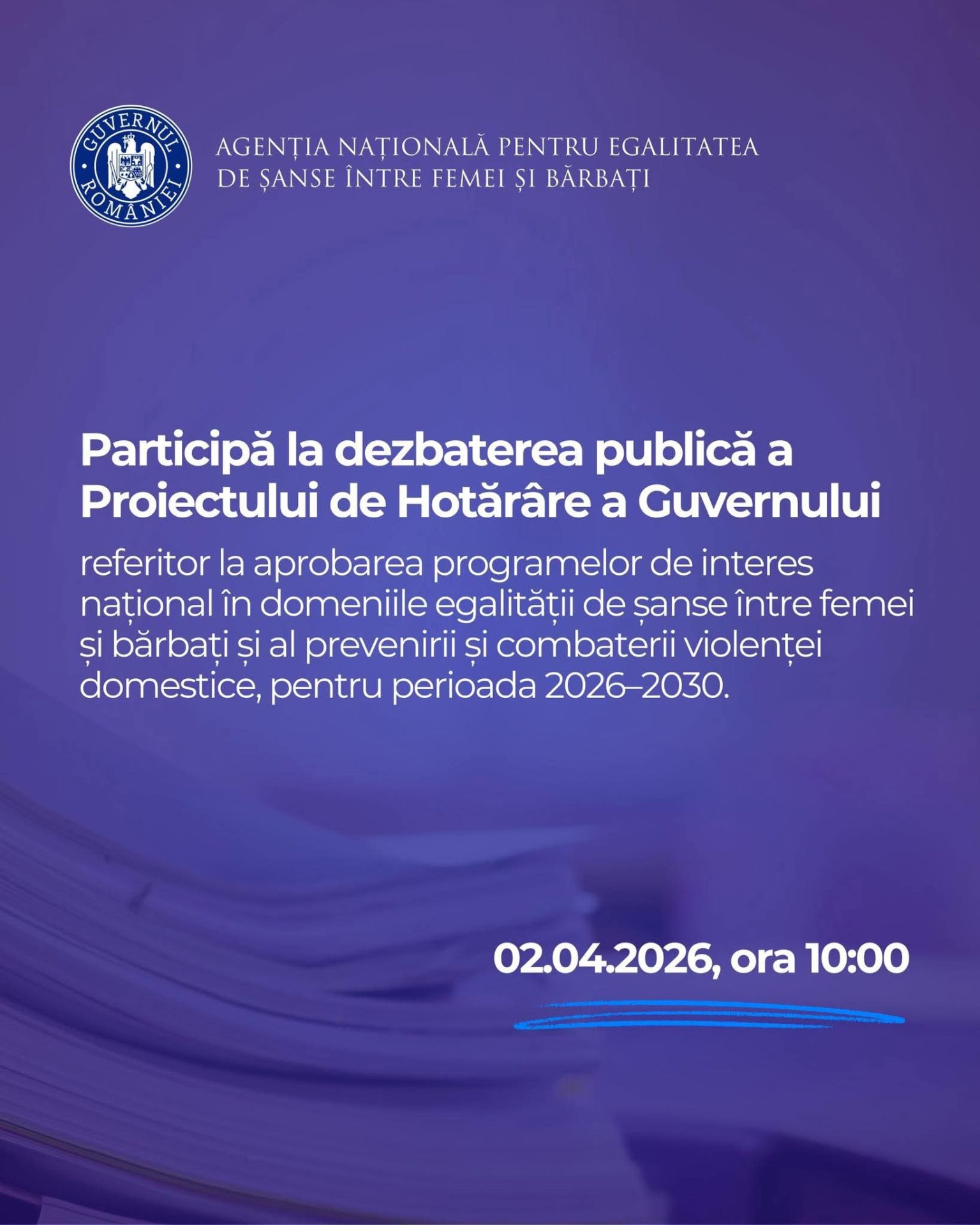 Subiectul central al întâlnirii îl reprezintă proiectul de Hotărâre a Guvernului prin care se vor aproba programele de interes național privind egalitatea de șanse între femei și bărbați, precum și prevenirea și combaterea violenței domestice, strategii vizate pentru perioada 2026–2030.