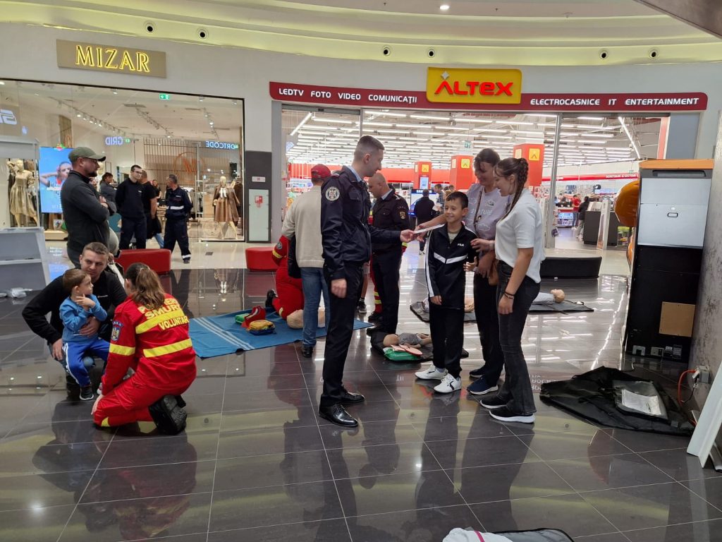 Imagini de la activitățile ISU Prahova dedicate Zilei Internaționale a Reducerii Riscurilor de Dezastre, la Shopping City Ploiești