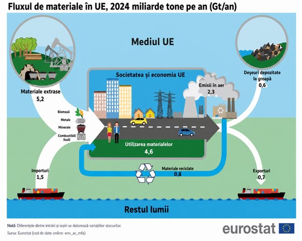 Conform celor mai recente date Eurostat, România înregistrează un indice de circularitate de doar 1,4%, situându-se mult sub media Uniunii Europene, care atinge pragul de 12,4%. Această discrepanță reflectă o economie care încă depinde major de consumul de resurse noi și care valorifică insuficient materialele deja existente în circuitul economic. Ministrul Mediului subliniază că această diferență reprezintă, în fapt, o pierdere de oportunități economice și locuri de muncă verzi.