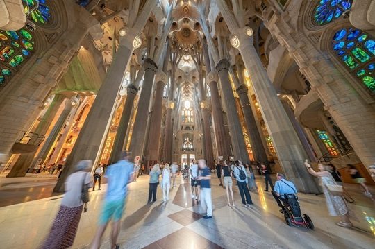 Bazilica Sagrada Familia din Barcelona a devenit joi cea mai înaltă biserică din lume, după ce o secțiune a turnului central a fost ridicată la locul său!