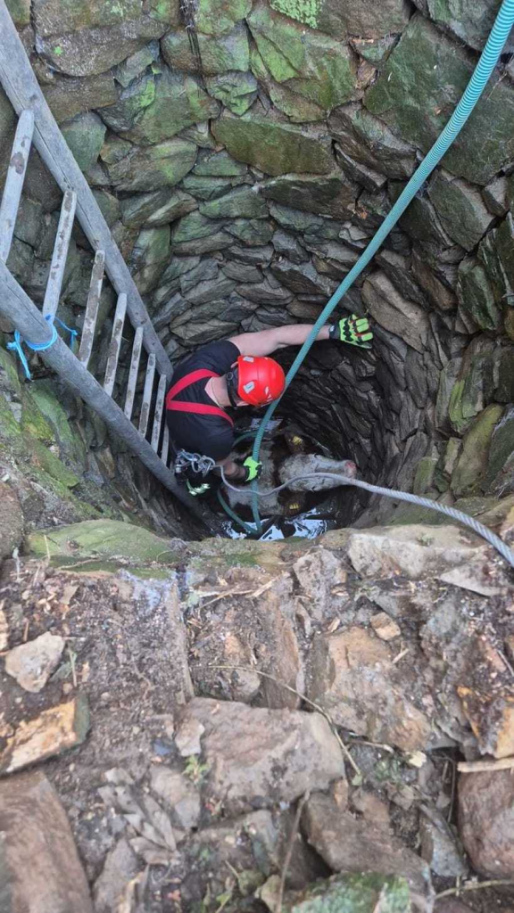 Salvare spectaculoasă în Caraș-Severin! Pompierii au scos o bovină căzută într-un puț