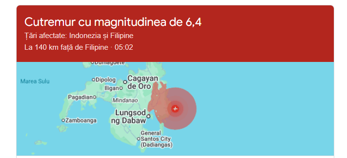 „Nu a fost atât de puternic, dar oamenii s-au grăbit să iasă afară”, a declarat Joey Monato, șeful poliției locale din Hinatuan, în sudul provinciei Surigao del Sur.