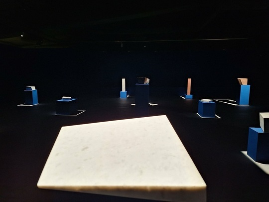 În Sala Auditorium, expoziția „Suprafețe tari, gânduri piezișe” (curator: Mălina Ionescu) oferă o retrospectivă a ultimilor 16 ani de practică artistică a Lilianei Basarab.