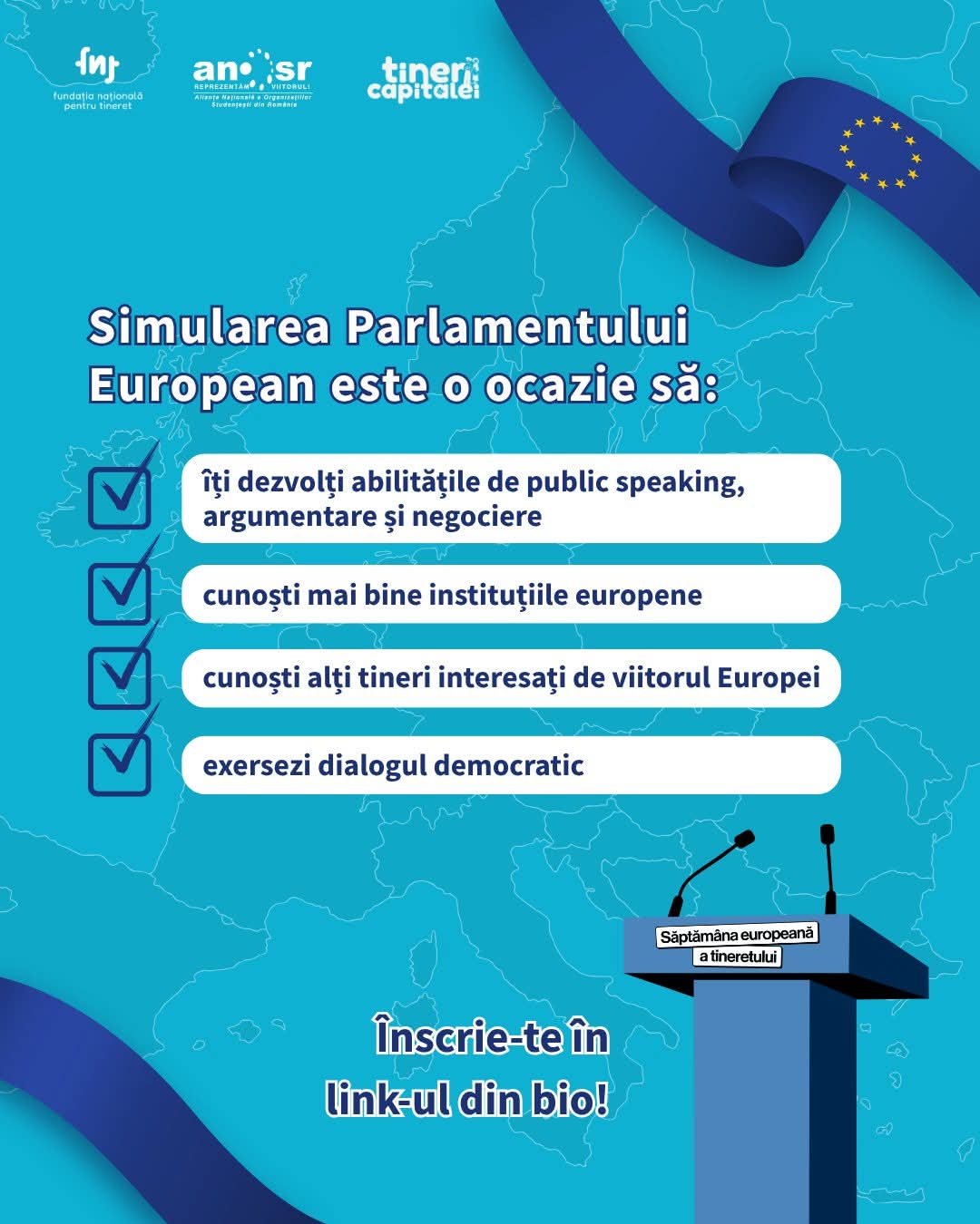În cadrul Săptămânii Europene a Tineretului, Fundația Națională pentru Tineret (FNT) invită tinerii bucureșteni să experimenteze procesul democratic european prin intermediul unei simulări parlamentare