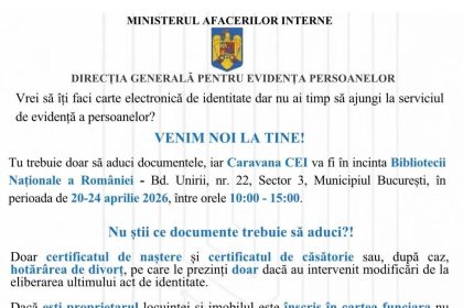 Ministerul Afacerilor Interne (MAI), prin Direcția Generală pentru Evidența Persoanelor (DGEP), vine…