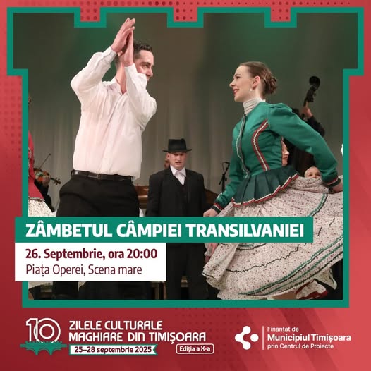 În perioada 24–28 septembrie 2025, centrul Timișoarei va găzdui cea mai mare sărbătoare a comunității maghiare: Zilele Culturii Maghiare Timișoara 2025. Timp de cinci zile, publicul va putea experimenta tradiția, cultura, experiența comunitară și distracția într-un cadru vibrant și interactiv.