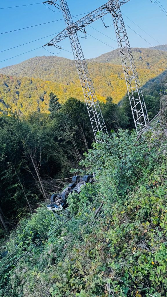 Bărbatul, care venea de la Arad și se îndrepta către Ploiești, ar fi pierdut controlul mastodontului în momentul în care vehiculul a intrat în tangaj și nu a mai putut fi redresat. TIR-ul a rupt parapetul de protecție și s-a răsturnat în afara carosabilului, oprindu-se la baza prăpastiei.