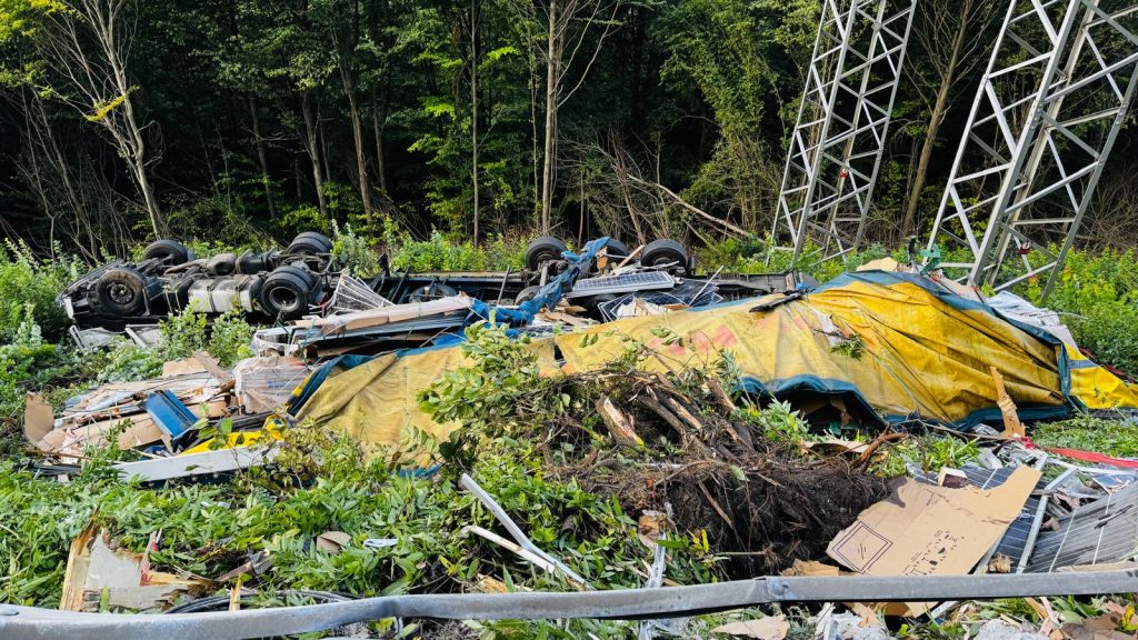 Un accident spectaculos s-a produs în această dimineață pe DN1, în zona Posada, acolo unde un TIR încărcat cu panouri fotovoltaice s-a prăbușit într-o râpă adâncă de aproximativ 15 metri. În mod incredibil, șoferul în vârstă de 31 de ani a ieșit teafăr din cabina contorsionată, fără să aibă măcar o zgârietură.